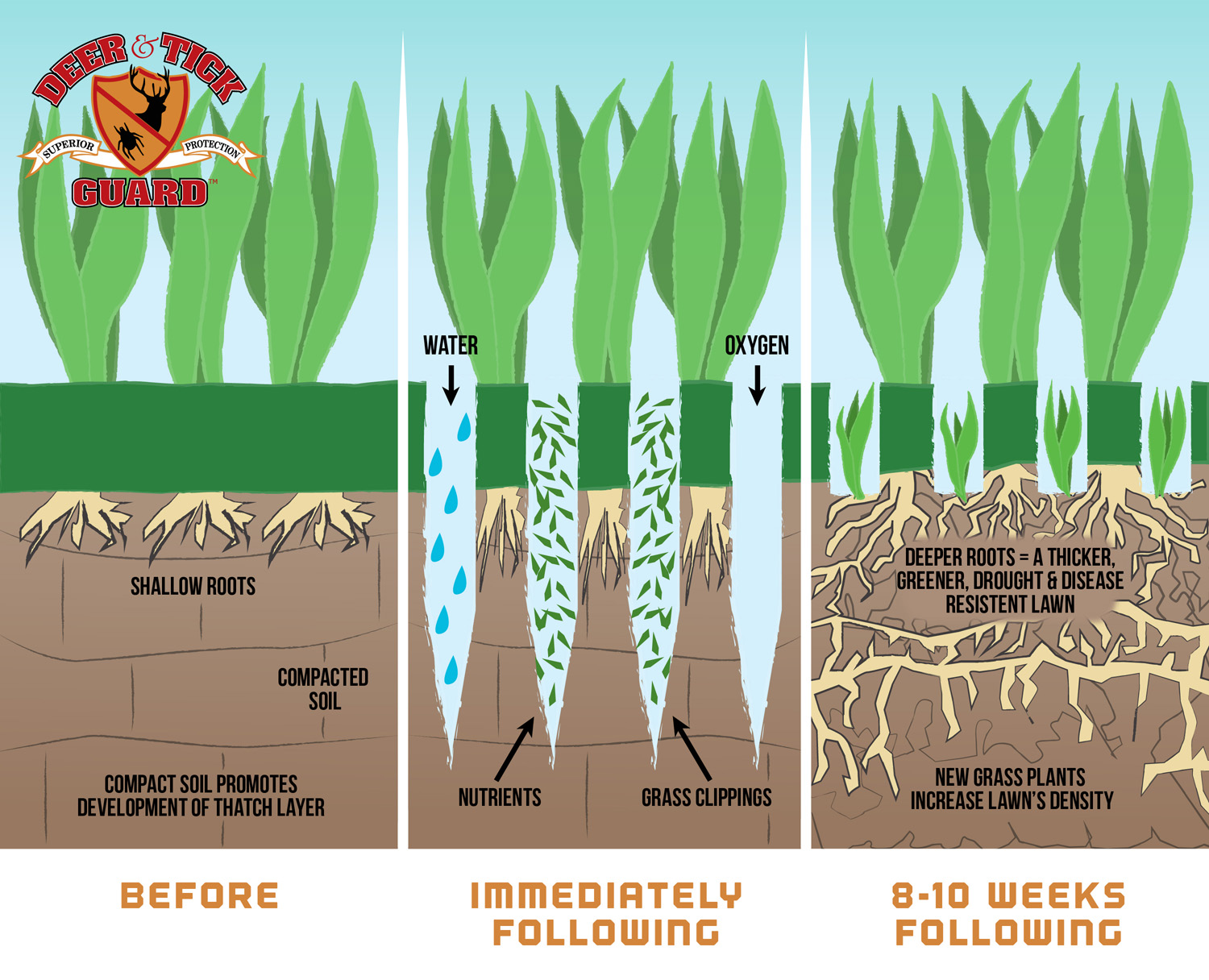 • Improves overall health of the lawn.